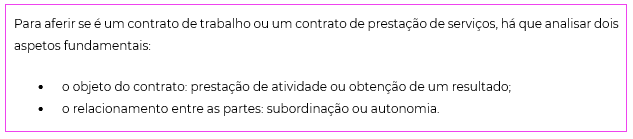 O errado enquadramento de um contrato de trabalho em contrato de prestação de serviços, os chamados “falsos recibos verdes”, tem diversas implicações jurídicas e laborais.