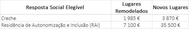 Subsídio não reembolsável à taxa de 100% do investimento elegível até ao limite do custo padrão de construção por utente: